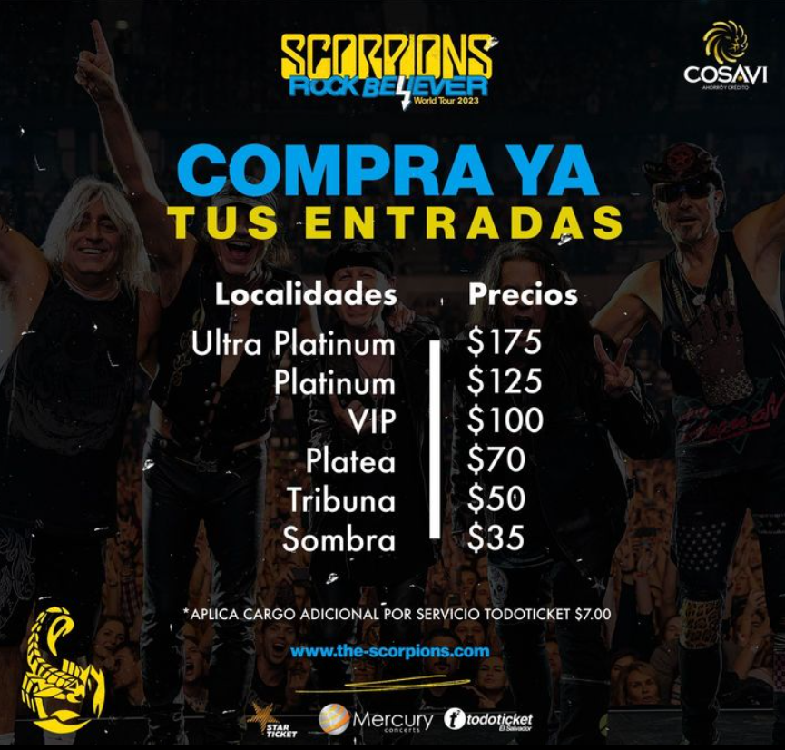 « Todos los Eventos Este evento ha pasado. Scorpions abril 8, 2023 @ 8:30 pm - 11:30 pm Steve Aoki » LOCALIDADES UBICACIONES Añadir al calendario Google Calendar iCalendar Outlook 365 Outlook Live Detalles Fecha: abril 8, 2023 Hora: 8:30 pm - 11:30 pm Web: https://todoticket-sv.com/events/scorpions Local Estadio Cuscatlán MQJH+C37, Calle Antigua a Huizucar, San Salvador San Salvador, San Salvador El Salvador Ver la web Local Organizador Star Ticket Ver la web Organizador